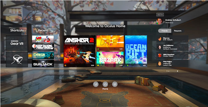 現(xiàn)在 Oculus 也兌現(xiàn)承諾,如期發(fā)布了更新。Gear VR 版本的 Oculus Home 背景設(shè)置在一個(gè)時(shí)尚舒適的公寓里,用戶界面跟 Oculus Rift 版本基本一致。但是 Gear VR 版本 Oculus Home 仍然沒有設(shè)置好友列表。此外,Oculus Home 在內(nèi)容搜索方面也進(jìn)行了更新,相比之前的逐頁查找,現(xiàn)在則可以根據(jù)內(nèi)容分類和字母順序排列訂閱的內(nèi)容。
