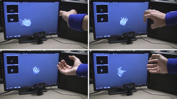 為了保證虛擬手部的運動能夠盡快地被呈現(xiàn)出來,通過識別數(shù)據(jù)庫中“就近空間(spatial nearest neighbors)”,程序員們可以預(yù)測手部下一時刻的動作形態(tài)。該算法也能夠?qū)κ植慷鄠€位置進行計算和顯示,而對于相機來說在相鄰區(qū)域的方向則可能無法直接看到。