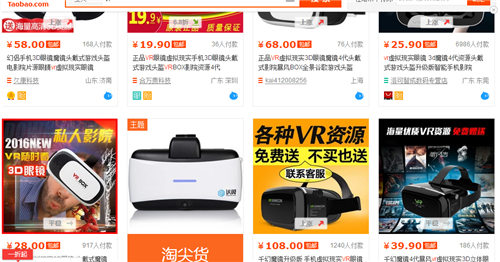 淘寶所示VR產(chǎn)品出售價(jià)格,多為同質(zhì)化嚴(yán)重的低價(jià)產(chǎn)品