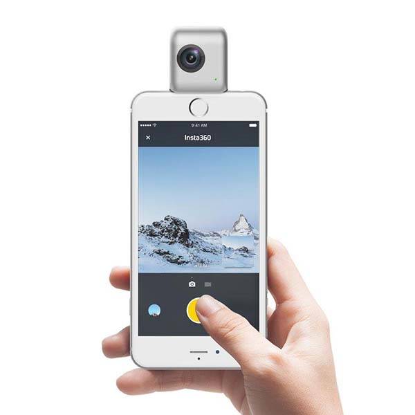 Insta360 Nano虛擬現(xiàn)實(shí)VR相機(jī)通過(guò)自帶集成的Lightning連接器,可以和你的iPhone手機(jī)相連接,并且Insta360 Nano的兩個(gè)魚(yú)眼鏡頭可以捕捉到360度全景沉浸視頻和照片。