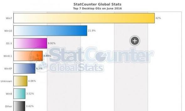 市場調(diào)查公司StatCounter提供的六月數(shù)據(jù)顯示