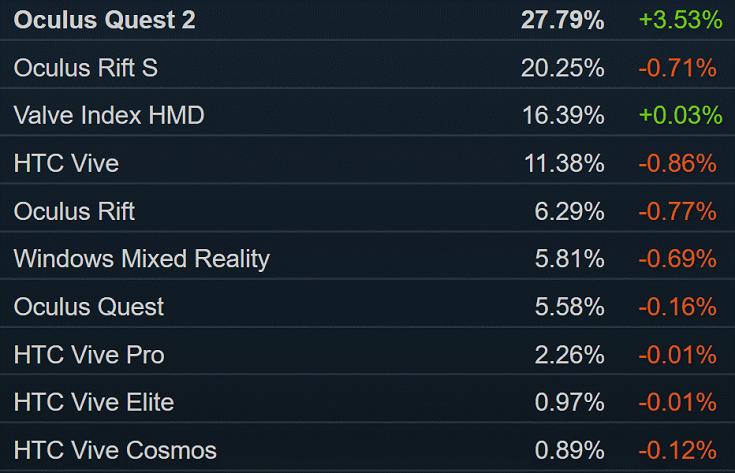 汪叢青并未提到自2019年Quest發(fā)布以來逐漸壯大的VR一體機市場情況。根據(jù)Steam最新的月度硬件調(diào)查數(shù)據(jù)(2021年4月),由于Quest 2的急速崛起,使用一體機串流功能運行PC VR應用的用戶占比大幅度提升,已達33.37%(Quest和Quest 2),并且仍在攀升中。