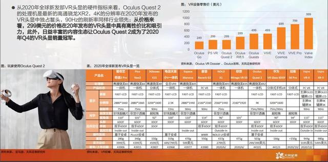 IDC預(yù)計(jì)至2023年,我國可穿戴設(shè)備的市場出貨量將接近2億臺;天風(fēng)證券則預(yù)測,Quest 2火爆的銷售場景有望帶動2021年VR頭顯全球出貨量超過1000萬臺。如此看,VR/AR產(chǎn)業(yè)正在步入高速發(fā)展期,產(chǎn)業(yè)鏈上的VR光學(xué)透鏡、顯示面板及模組、芯片、傳感器等業(yè)務(wù)將迎來“利好”。