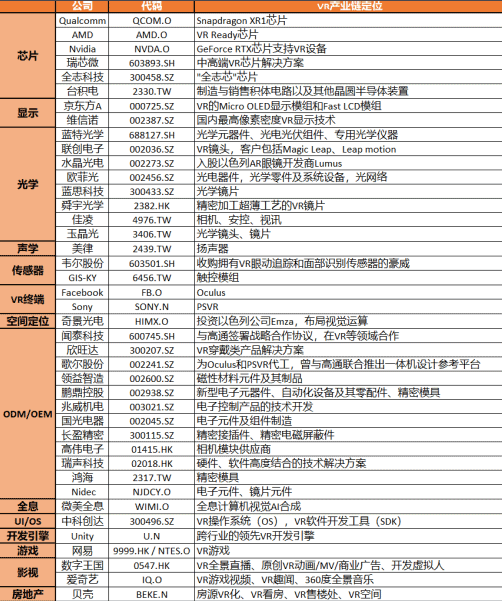 此外,利雅得、欣旺達(dá)、恒信東方等A股公司在VR/AR領(lǐng)域也有所布局?!半S著VR設(shè)備整體體驗(yàn)改善、價(jià)格降低、消費(fèi)端產(chǎn)品帶動,VR銷量或得到進(jìn)一步提升。”天風(fēng)證券研報(bào)表示,在VR設(shè)備1000萬銷量奇點(diǎn)到來后,VR內(nèi)容和生態(tài)系統(tǒng)有望出現(xiàn)跨越式發(fā)展,將帶動全球VR產(chǎn)業(yè)鏈業(yè)態(tài)重構(gòu)。