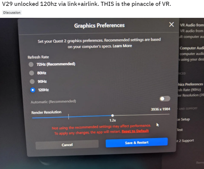 據(jù)外媒UploadVR報(bào)道,Oculus Quest v29版本新增120Hz Air Link功能支持,這一功能支持最初在Reddit論壇曝光,而此前Oculus官方博客Quest v29版本貼子則側(cè)重介紹了Infinite Office及Live Overlay等功能。