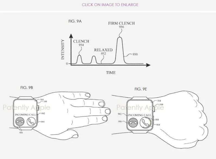 該專利在描述中稱,其使用陀螺儀和加速度計等內(nèi)置運動傳感器,以及光學(xué)心率傳感器和設(shè)備上的機器學(xué)習(xí)功能,Apple Watch可以檢測肌肉運動和肌腱活動的細微差別,從而使用戶可以通過系列手勢,例如捏或握緊,從而對手表進行操作。
