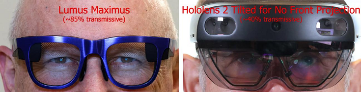 Lumus是少數(shù)能夠制造波導光學器件的廠商之一,但與其他廠商不同,Lumus制造的不是衍射波導鏡片,而是反射波導鏡片,相比衍射波導鏡片、反射波導鏡片在光效率方面具有明顯優(yōu)勢,這意味著該鏡片擁有更大的亮度(對于戶外使用非常重要)和更透明的透鏡。