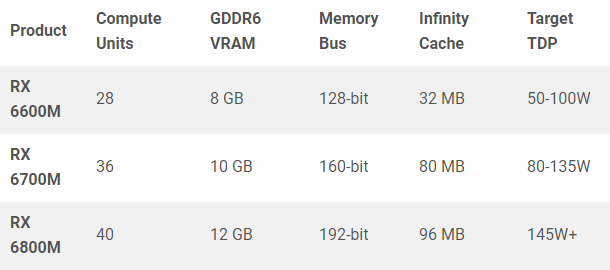 AMD表示,與RX 5000M系列相比,RX 6000M系列顯卡在相同性能下性能提高了50%,功耗降低了43%。