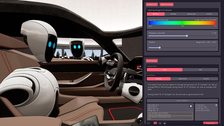 想象一下,作為一名汽車設(shè)計師,你將能依據(jù)Claria所反饋的眼動追蹤互動數(shù)據(jù)來設(shè)計符合用戶需求的汽車儀表盤;同樣,Claria也能應(yīng)用于游戲開發(fā)領(lǐng)域,游戲開發(fā)者可以利用該工具掌握玩家當(dāng)前心情指數(shù),從而有針對性調(diào)整產(chǎn)品數(shù)值;而醫(yī)療保健專業(yè)人員、急救人員和軍隊也可以使用Claria識別壓力觸發(fā)因素。