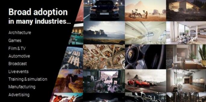 引擎實(shí)時(shí)渲染的效果纖毫畢現(xiàn)、令人沉浸,與現(xiàn)實(shí)場(chǎng)景混合在一起,足以以假亂真;在物理特性和動(dòng)作方面的積累,可以支持簡單的仿真模擬應(yīng)用。因此,一些商業(yè)引擎開始探索如何為更多行業(yè)開放這些能力,并提供更切合需求的工具,逐步應(yīng)用在對(duì)高保真、實(shí)時(shí)呈現(xiàn)有需求的多種場(chǎng)景,比如建筑、影視、汽車、直播、模擬訓(xùn)練、工業(yè)制造、廣告等。