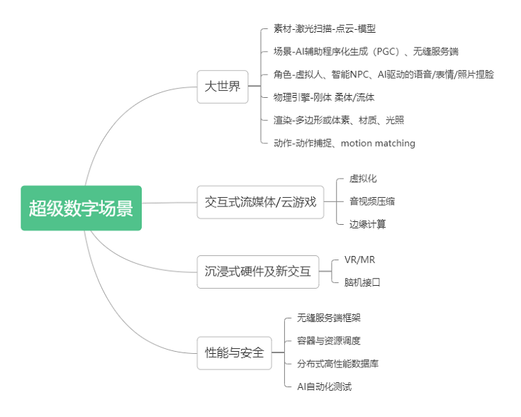如果深潛至內(nèi)容和社交層面的游戲理解之下,就會(huì)看到其更為“硬核”的一面——游戲不僅是創(chuàng)作和表達(dá)的媒介、社會(huì)交往的空間,更是科技應(yīng)用和創(chuàng)新的前沿。游戲研發(fā)技術(shù)中的通用技術(shù)及工具正在賦能影視、仿真、工業(yè)等多個(gè)領(lǐng)域,AI云計(jì)算等新技術(shù)將游戲作為深度應(yīng)用場(chǎng)景,新硬件與新交互帶來算力和體驗(yàn)多重突破。未來游戲?qū)?huì)朝著哪些科技領(lǐng)域突破發(fā)展,又將如何助力“超級(jí)數(shù)字場(chǎng)景”加速虛實(shí)融合、創(chuàng)造更多價(jià)值?系列文章將從關(guān)鍵技術(shù)和發(fā)展路徑角度,圍繞以下幾個(gè)側(cè)面嘗試進(jìn)行解讀。