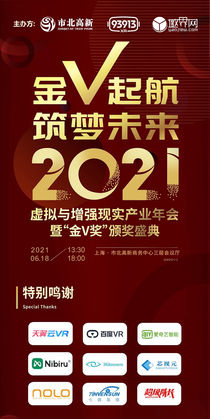 「金V起航,筑夢未來」,備受期待的2021虛擬與增強現(xiàn)實產(chǎn)業(yè)年會暨「金V獎」頒獎盛典將于6月18日13:30在上海市北高新商務中心隆重啟幕!