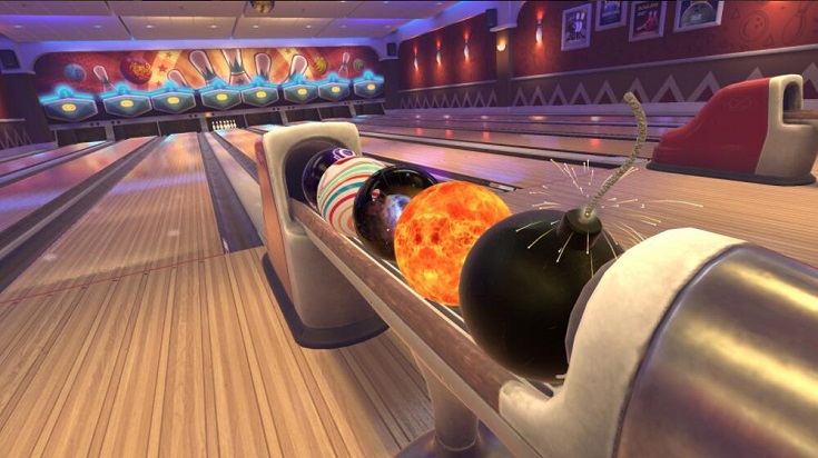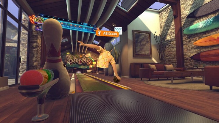 值得一提的是本作還為家庭玩家?guī)砹酥С?名家庭成員互動(dòng)游玩的“Pass and Play”玩法,以打造VR保齡球家庭聚會(huì)。