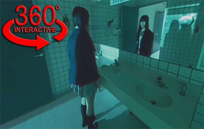 少女進(jìn)入了衛(wèi)生間后不久就聽到了奇怪的聲音,注意你的視角,如果是在網(wǎng)頁觀看的話,請注意用鼠標(biāo)左右移動視頻視角,以替代在VR設(shè)備下的視角移動。很快你就會發(fā)現(xiàn)好奇害死貓的道理。