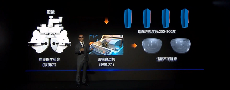 那么一款好的AR眼鏡不僅大視角、輕、薄、纖細(xì)外,還要讓人真正看得清戴得舒服,用戶可以在指定的眼鏡店通過(guò)專業(yè)的光學(xué)驗(yàn)光,測(cè)量出自己的左右眼近視度數(shù)(200°-500°內(nèi)),然后選擇專用帶度數(shù)的AR鏡片,在配合瞳距、瞳高和鏡框形狀,用專業(yè)眼鏡店的鏡片磨邊機(jī)打磨好鏡片,再裝配整機(jī),像專業(yè)處方眼鏡配鏡那樣給用戶個(gè)人定制化最適合的AR眼鏡。