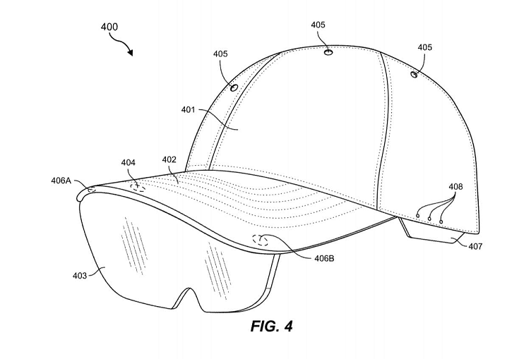 該專利描繪了一個可懸掛在用戶眼前并與帽子連接的遮陽板,這款基于帽子的VR/AR頭戴設備還能與VR手套及CTRL-Labs腕帶相兼容。