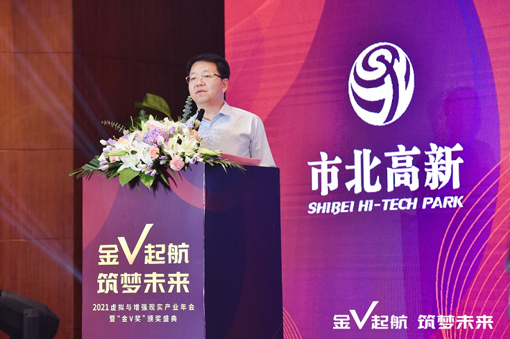 2021虛擬與增強現(xiàn)實產(chǎn)業(yè)年會暨“金V獎”頒獎盛典上主辦方上海市北高新集團總裁陳軍在開場致辭中首先回顧了市北高新園區(qū)的發(fā)展歷程,并向現(xiàn)場嘉賓介紹了市北高新園區(qū)所取得的輝煌成就。市北高新園區(qū)是靜安推進「一軸三帶」發(fā)展戰(zhàn)略,實施「全球服務(wù)商計劃」的核心組成部分,也是對接上海全球科創(chuàng)中心建設(shè),推進「3+5+X」產(chǎn)業(yè)布局的重點發(fā)展區(qū)域。