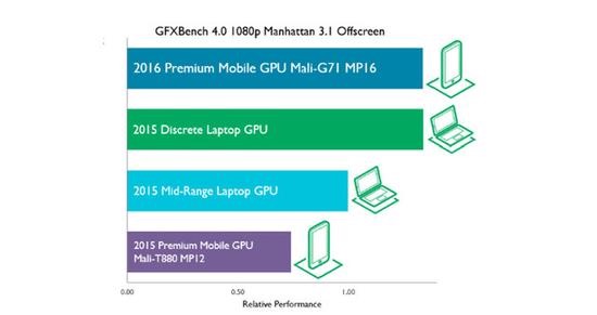 ARM最新發(fā)布的Mali-G71的體積比指甲還要小,但是比現(xiàn)在市場(chǎng)上大多數(shù)的高端圖形顯卡性能都要強(qiáng)大。在跑分中,Mali-G71擊敗了英特爾的HD Graphics 5500。Mali-G71采用了公司的“Bifrost”結(jié)構(gòu),處理能力比之前的T880要強(qiáng)大兩倍。ARM宣稱,與T880相比,該GPU的運(yùn)行速度要快50%,能耗減少了20%。這也意味著,Mali-G71可以無(wú)壓力運(yùn)行虛擬現(xiàn)實(shí)、增強(qiáng)現(xiàn)實(shí)和4K視頻。