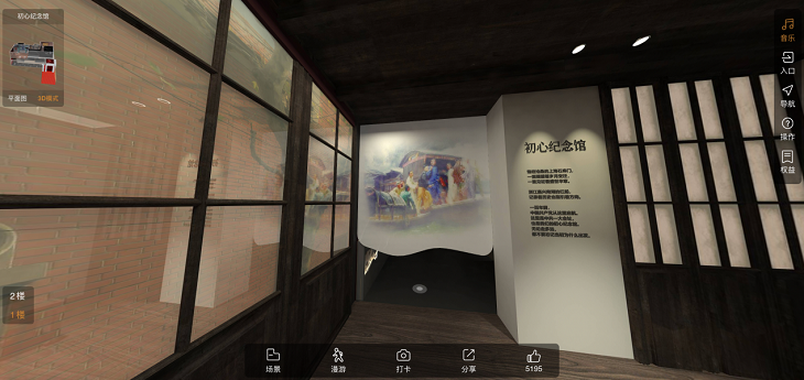 此次合作,百度VR憑借行業(yè)領(lǐng)先的景深漫游能力,將3D模型、全景圖片、普通圖片、音樂、視頻等通用素材混合編輯。輕觸屏幕,觀眾們可以在“初心紀念館”重溫建黨初期的艱辛與堅定;在“崢嶸歲月”感受革命炮火的轟鳴;在“歲月回憶室”重溫延安窯洞時光;在“奮斗一廠”投身建設(shè)熱潮;在“富民大街”感受改革開放以來生活欣欣向榮的歡愉;在“追夢新時代”感受新時代中國日新月異的發(fā)展;在“逐夢太空”共賞“火星日出”;在“誓言有聲”抒發(fā)所感所想……線上場景連續(xù)、畫面透視自然、空間真實,仿佛時光穿越、百年歲月重現(xiàn),帶領(lǐng)觀眾重溫歷史、致敬百年。