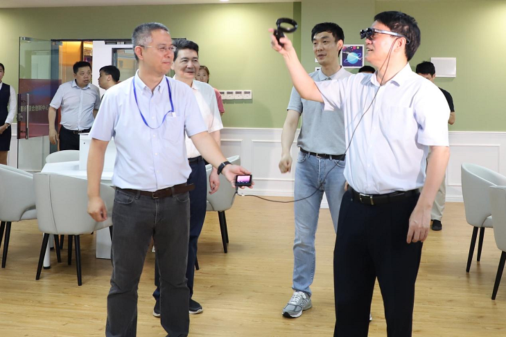 影創(chuàng)科技集團董事長孫立陪同接待,并詳細闡述了關(guān)于聯(lián)合創(chuàng)新中心的發(fā)展歷程、核心優(yōu)勢、深耕成果、發(fā)展戰(zhàn)略等。萬廣明市長對聯(lián)合創(chuàng)新中心的發(fā)展模式以及為VR產(chǎn)業(yè)發(fā)展做出的重要貢獻給予充分肯定,并鼓勵聯(lián)合創(chuàng)新中心充分發(fā)揮資源和市場優(yōu)勢,在新一輪科技賦能產(chǎn)業(yè)的進程中做好排頭兵。