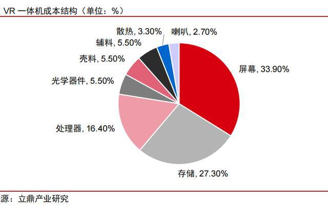 立鼎產(chǎn)業(yè)研究對一體機(jī)成本結(jié)構(gòu)進(jìn)行拆解顯示,顯示面板、存儲(chǔ)、處理芯片及光學(xué)器件分別占比33.90%、27.30%、16.40%及5.50%,四者成本占比超過80%。綜合考慮到價(jià)值量結(jié)構(gòu),我們認(rèn)為應(yīng)當(dāng)關(guān)注顯示面板、光學(xué)器件、芯片及整機(jī)制造四個(gè)細(xì)分賽道的投資機(jī)會(huì)。