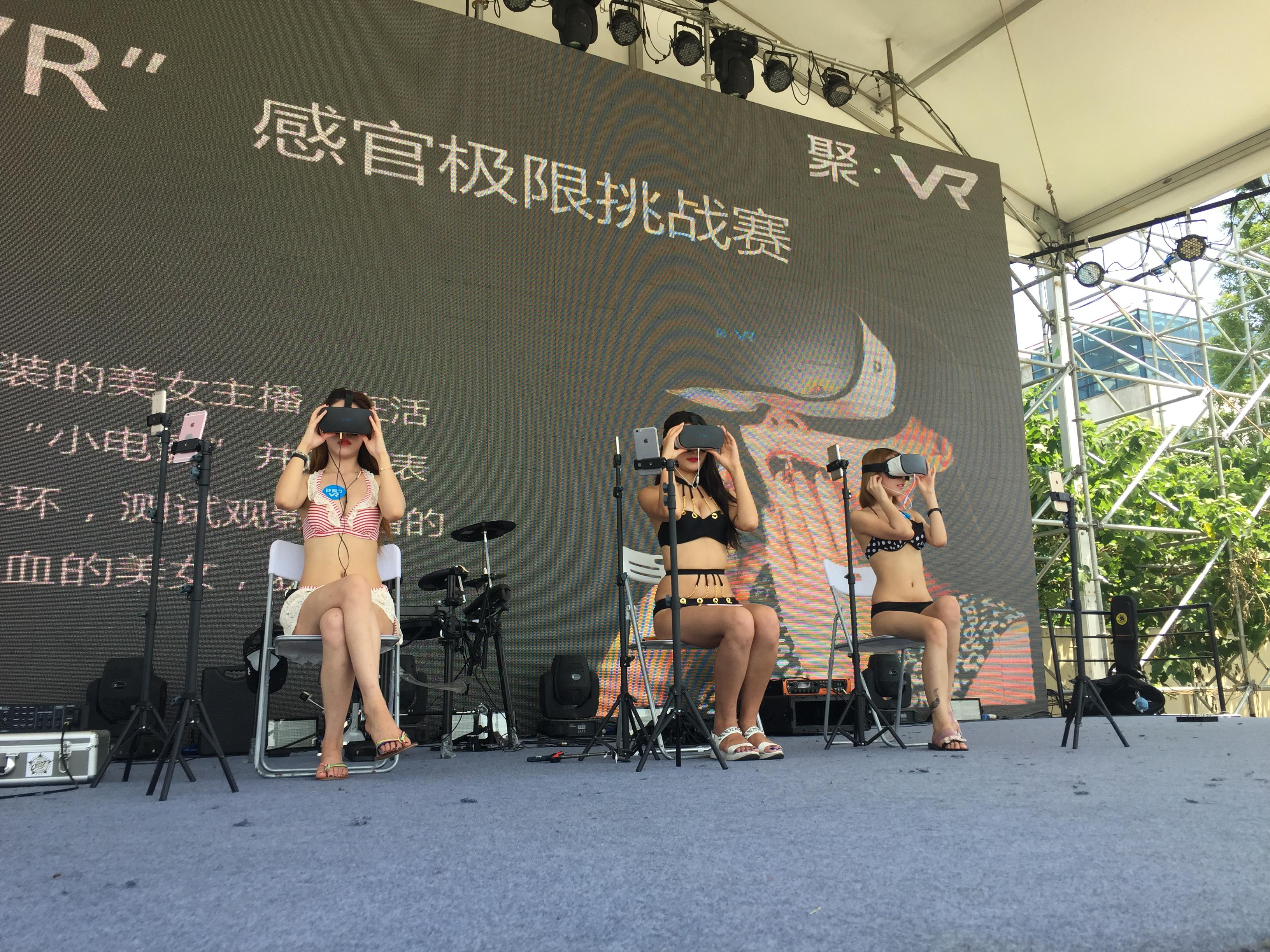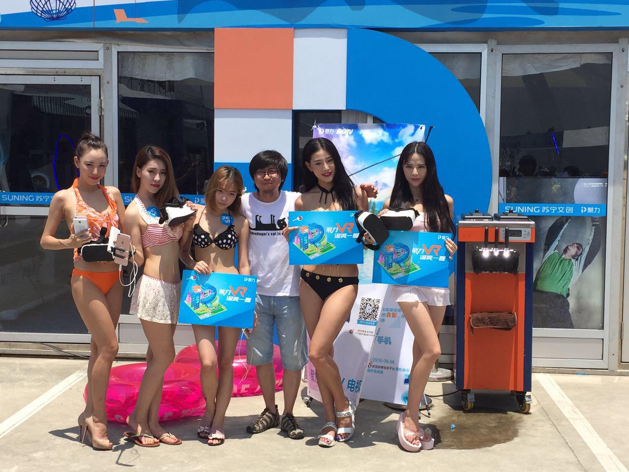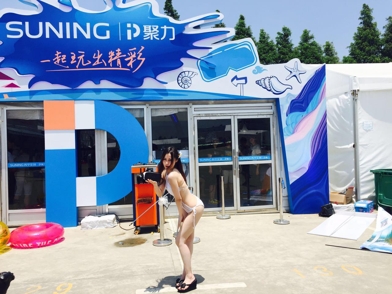 現(xiàn)場(chǎng)活動(dòng)精彩紛呈,亮點(diǎn)頻現(xiàn)。上午10點(diǎn),三位身著性感比基尼泳裝的美女網(wǎng)紅在滑水節(jié)現(xiàn)場(chǎng)出現(xiàn),霎時(shí),吸引了眾多圍觀者?,F(xiàn)場(chǎng)直播滑水,濕身魅力可讓眾多線上線下網(wǎng)友把持不住呀!另一邊搖滾樂隊(duì)的激情表演點(diǎn)燃了現(xiàn)場(chǎng)氣氛,觀眾嗨到根本停不下來。隨后,在聚 VR一體機(jī)體驗(yàn)區(qū)三位美女網(wǎng)紅參加了“聚 VR一體機(jī)感官極限挑戰(zhàn)賽”,現(xiàn)場(chǎng)人氣爆棚!