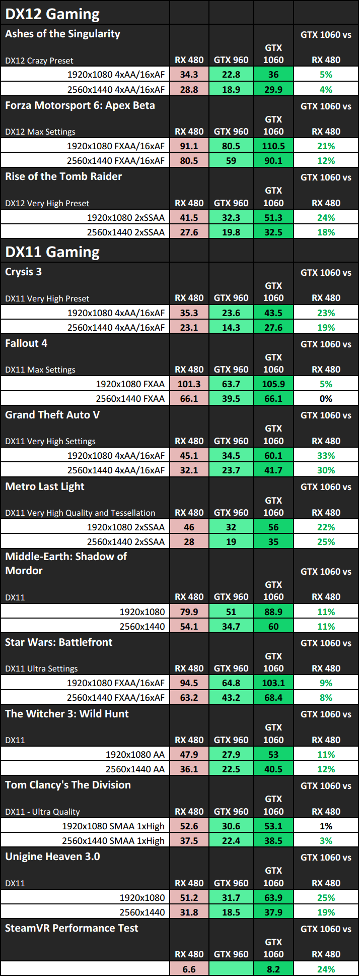 NVIDIA 發(fā)布了自家 GTX 1060 的基準(zhǔn)測(cè)試結(jié)果來迎戰(zhàn) AMD RX 480,這兩款都是“VR Ready ”的高性價(jià)比顯卡。此次測(cè)試還加入了上一代顯卡 GTX 960。需要指出的是,以下只是 NVIDIA 的內(nèi)部測(cè)試結(jié)果。我們很快也會(huì)發(fā)布屬于我們自己的對(duì)比測(cè)試結(jié)果。