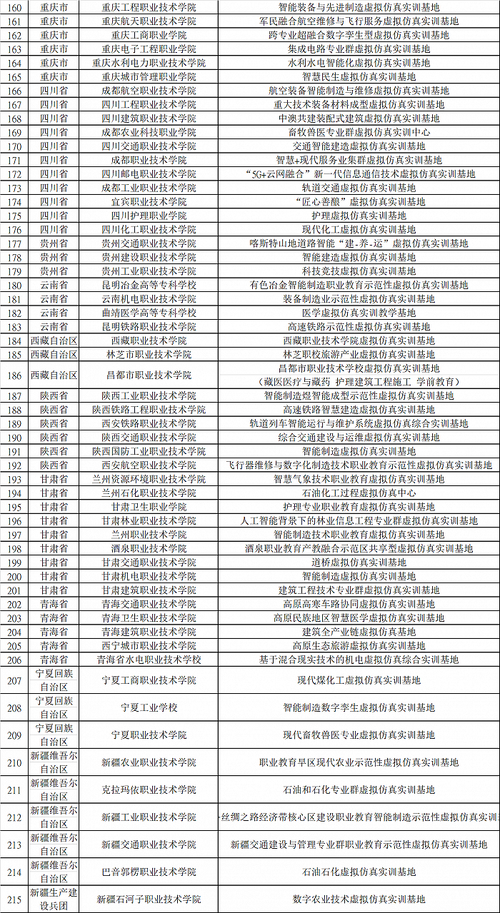 教育部職業(yè)教育與成人教育司日前發(fā)布《關(guān)于職業(yè)教育示范性虛擬仿真實訓基地培育項目名單的公示》,公示指出根據(jù)《關(guān)于開展職業(yè)教育示范性虛擬仿真實訓基地建設(shè)工作的通知》(教職成司函〔2020〕26號),經(jīng)各省推薦、線上線下專家遴選等程序,擬確定職業(yè)教育示范性虛擬仿真實訓基地培育項目215個。現(xiàn)將名單予以公示,公示期為2021年7月16日至2021年7月22日。