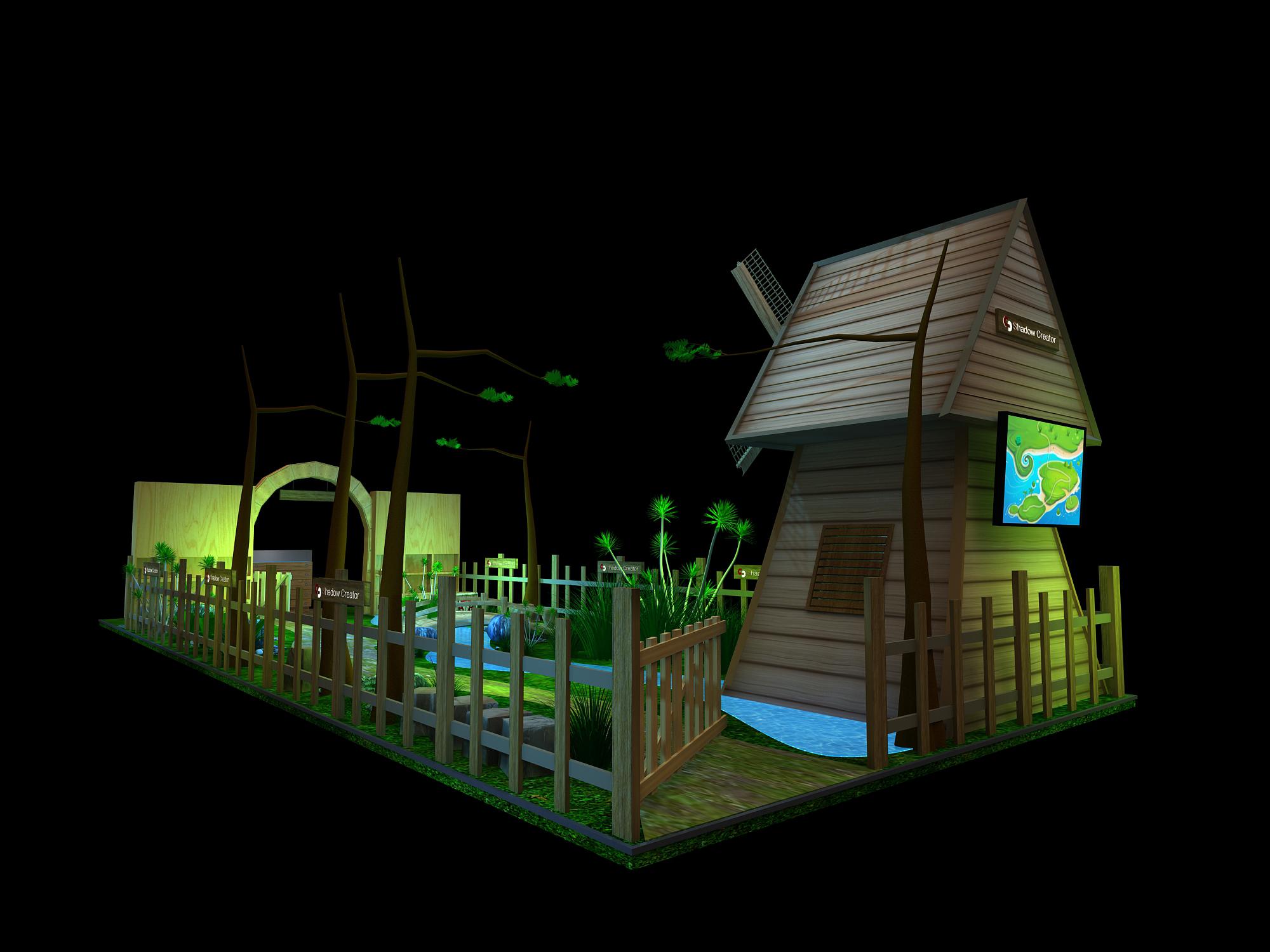 在本次的展位設(shè)計(jì)上,影創(chuàng)科技一改此前在CES及感知大會(huì)等科技展上的以黑白色調(diào)為主的穩(wěn)重形象,拋出一套田園風(fēng)格的搭建方案,綠植流水木屋,儼然把叢林搬到了室內(nèi)。