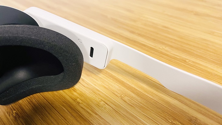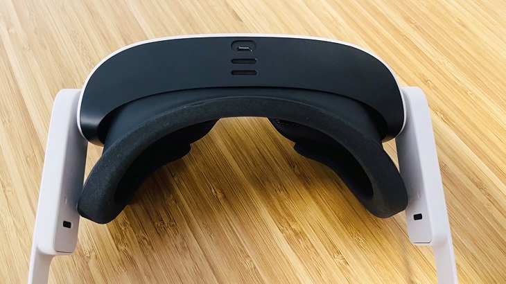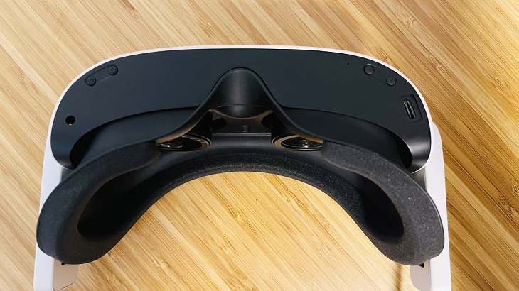 頭顯底部(如上圖)從左到右依次是3.5mm耳機接口、亮度調節(jié)鍵、麥克風、2D/3D切換鍵、分辨率切換鍵以及Type-C接口,非常全面,用戶可以按照自己的使用習慣來調節(jié)各項參數(shù)。