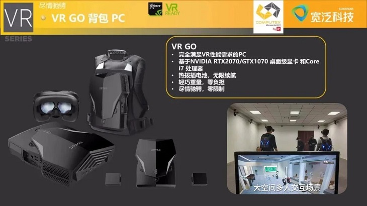 ●背包式設(shè)計(jì),讓VR體驗(yàn)不受空間限制。通過(guò)擴(kuò)展口可在穿戴VR電腦和桌面環(huán)境之間輕松轉(zhuǎn)換