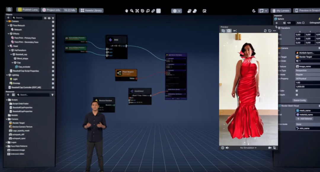 除了在硬件方面推陳出新,Snapchat也有自己的AR軟件開(kāi)發(fā)平臺(tái)——Lens Studio,用于構(gòu)建和發(fā)布相關(guān)的Lens(所謂的Lens是指疊加了數(shù)字效果的濾鏡視圖)。通過(guò)Lens Studio,創(chuàng)作者可以無(wú)線(xiàn)將Lens推送到Spectacles,進(jìn)行實(shí)時(shí)測(cè)試和快速迭代。