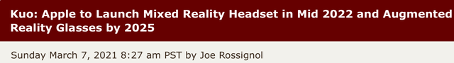 回到上文提及的“謠言”本身,我們最快將在明年中驗(yàn)證郭明錤爆料的第一階段路線(xiàn)圖(2022年中,重點(diǎn)用于游戲和視頻的AR/VR頭盔問(wèn)世)是否屬實(shí)。