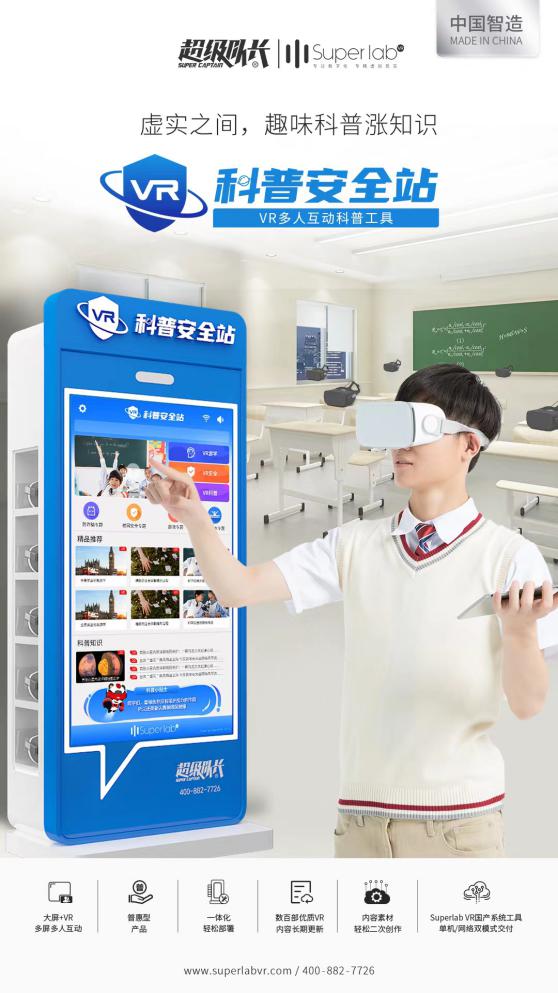 青少年在成長過程中不但應(yīng)該掌握科學(xué)知識,也應(yīng)掌握各種安全自救技能,超級隊長從青少年兒童科普安全教育出發(fā),首創(chuàng)“大屏+VR多人互動”的沉浸式科普安全學(xué)習(xí)體驗產(chǎn)品——VR科普安全站。內(nèi)置數(shù)百部“安全教育、科普學(xué)習(xí)、云上游學(xué)”等多方面VR科普安全知識內(nèi)容,打造沉浸式VR科普學(xué)習(xí)新模式,圍繞解決科普與安全學(xué)習(xí)過程中“內(nèi)容抽象不易理解、學(xué)習(xí)形式單一、體驗方式落后”等問題,努力提升教師和學(xué)生安全意識和自護(hù)自救能力。