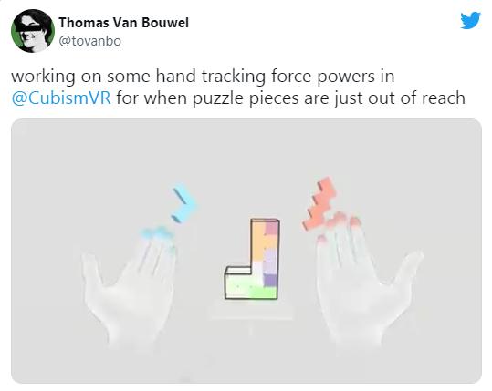 據(jù)UploadVR報道,比利時獨(dú)立開發(fā)者Thomas Van Bouwel發(fā)布了一段VR益智游戲「Cubism」的最新視頻,展示了正在開發(fā)的旨在提高手勢追蹤易用性的新功能。