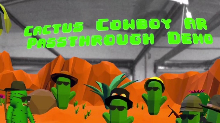 據(jù)悉這款支持直通功能的Quest 2 AR游戲名為「Cactus Cowboy–AR Passthrough Techdemo」,這是開發(fā)者發(fā)布的眾多第一人稱射擊及解謎游戲中的一款,而在游戲中,玩家將能化身成為AR仙人掌殺手。
