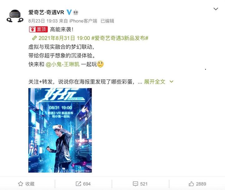 昨晚七點(diǎn),愛奇藝奇遇VR官方宣布:新品奇遇3線上發(fā)布會(huì)時(shí)間定檔8月31日19:00,并曬出彩蛋:小鬼王琳凱的主題海報(bào),看來簽約小鬼做品牌代言這事兒已八九不離十。被大量網(wǎng)友期待已久的年度VR旗艦大作——愛奇藝奇遇3,終于要來了!