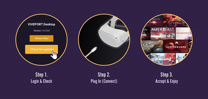 1.登記成為VIVEPORT會(huì)員 (viveport.com), 并下載最新版本的VIVEPORT桌面應(yīng)用程序(1.4.13.4)