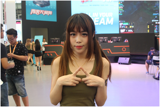 這位四小天鵝之一的妹子走的也是性感路線,酷炫的設(shè)備VS烈焰紅唇