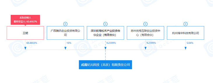 其中,威魔紀元新增股東廣西騰訊創(chuàng)業(yè)投資有限公司,持股比例16%,為公司第二大股東。