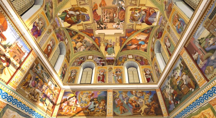 不僅如此,參觀者將沉浸在由124幅不同壁畫組成的“Hisstine Chappel”虛擬空間里,自由探索VR畫廊,“Step into Cat Art”是跨平臺VR畫展,支持用戶采用包括智能手機、PC在內(nèi)的設(shè)備進(jìn)行欣賞。