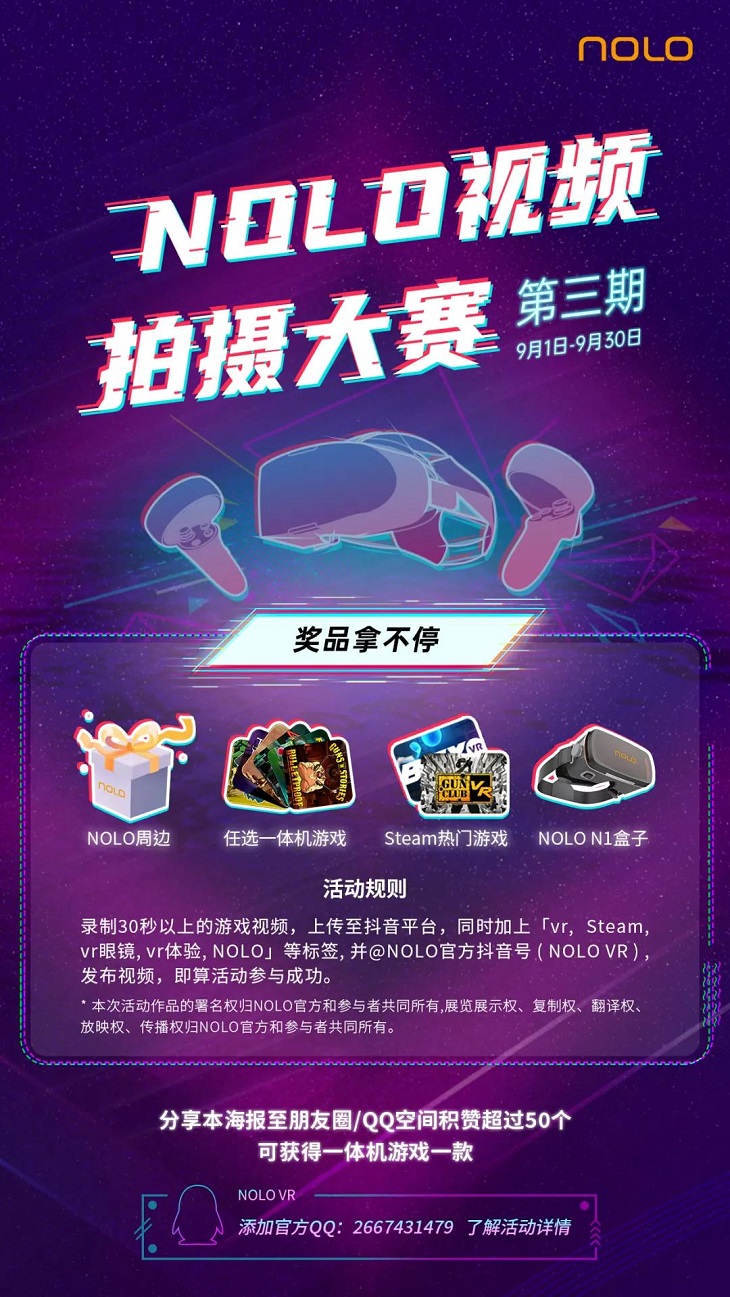 目前游戲已經(jīng)登陸NOLO Sonic商店,首周NOLO Sonic用戶折扣價(jià)38.2元(原價(jià)50.9元),成為大師,在此一舉,讓我們一起“玩”出圈吧!你也可以參與NOLO第三屆抖音大賽,將你獨(dú)屬于的高光時(shí)刻分享出來(lái),就可以獲得驚喜獎(jiǎng)勵(lì),參與方式如下,可別說我沒告訴大家哦~