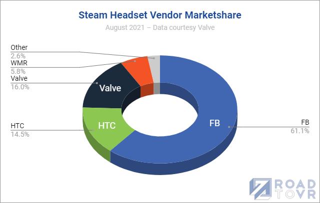 至于頭顯供應(yīng)商的整體份額,F(xiàn)acebook繼續(xù)占據(jù)主導(dǎo)地位,占比61.13%(-0.14%),Valve占比15.99%(-0.24%),HTC占比14.45%(-0.11%)。