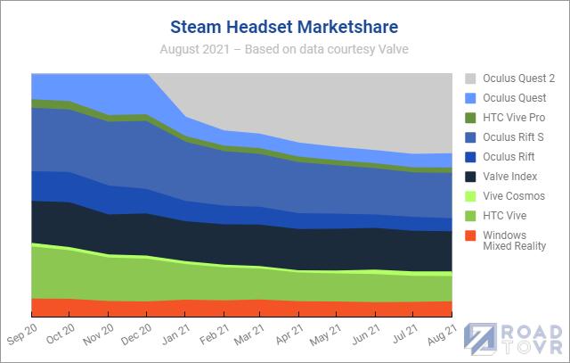 據(jù)RoadtoVR報道,自Quest 2推出以來,這款頭顯已穩(wěn)步成為排行頭部的SteamVR頭顯之一,目前約占該平臺所有頭顯之和的三分之一,由于Facebook召回事件,Quest 2銷售停滯了一個月,這是其首次在Steam平臺沒有增長,但隨著Quest 2 128GB和256GB型號的發(fā)售,預(yù)計未來幾個月Quest 2在Steam平臺的占比將繼續(xù)擴大。