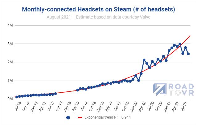 而從最新數(shù)據(jù)來看,Steam VR頭顯數(shù)量明顯下降,從7月的2.07%下降至8月的1.74%。但這種下降可能也被夸大了,就像我們上月看到的情況那般,當(dāng)數(shù)據(jù)下降反彈時,Steam涌入了大量中國(+7.21%)和韓國(+1.25%)用戶,加上中國和韓國Steam用戶激增的變量(甚至比6月數(shù)據(jù)中報告的VR用戶大幅下降還要大),因此很難說Steam最新VR用戶數(shù)量是否精確。