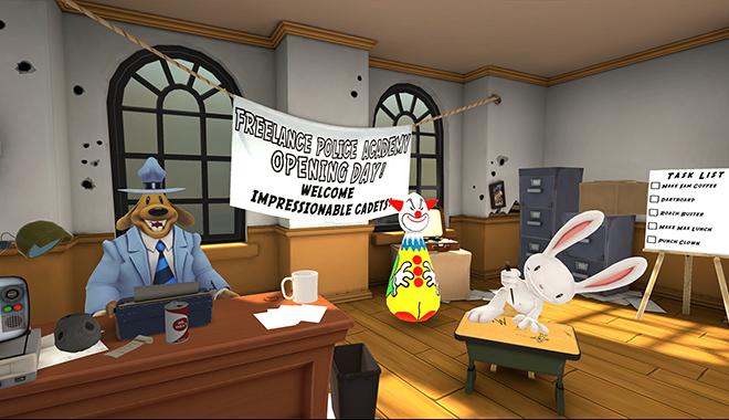 《妙探闖通關:虛擬時刻(Sam & Max: This Time It’s Virtual!)》是一款VR冒險游戲,Sam是一只戴著帽子的狗,Max是一只有過動癥且不穿衣服的兔子,他們倆組成了“自由警察”二人組,是銀河系中著名的糊涂正義使者?!睹钐疥J通關:虛擬時刻(Sam & Max: This Time It’s Virtual!)》延續(xù)了經典漫畫《Sam & Max》的設定,這款視頻游戲仍然以他們?yōu)橹鹘?,在這款游戲中,即使像Sam和Max這樣出了名的邪惡斗士也需要得到他人的幫助,而這一次,他們利用了虛擬現實的神秘魔力,邀請玩家進入他們的奇異世界,玩家在他們的指引下通過屠殺怪物、障礙賽、精準射擊來釋放怒火,當然,還有拯救這個該死的世界。