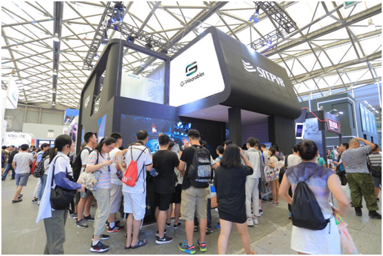 今年,主辦方首次專門設(shè)立的eSmart展(E2、E3展館)并將其列為觀眾入場(chǎng)后的第一站。各VR廠商也不遺余力,紛紛拿出最新的VR設(shè)備和游戲作品,邀請(qǐng)觀眾現(xiàn)場(chǎng)體驗(yàn)。在所有VR游戲體驗(yàn)區(qū)中,有一家技術(shù)型公司的展臺(tái)格外引人注目,它就是近期發(fā)布了國(guó)內(nèi)首款大空間可移動(dòng)多人交互VR游戲的國(guó)承萬通(G-Wearables)的STEPVR展臺(tái)。