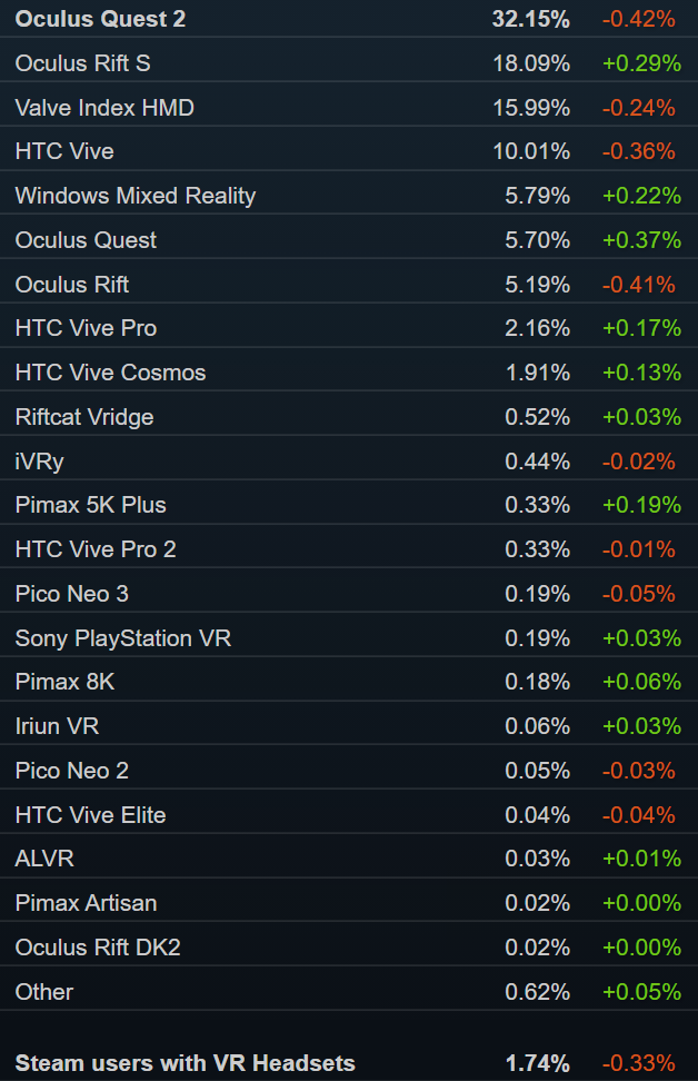 備受我們關(guān)注的「V社VR套件(Valve Index)」在短暫跌出TOP10之后,再度上榜,位列第八名。Steam 8月硬件和軟件調(diào)查報(bào)告顯示,Valve Index最新份額為15.99%(-0.24%),依舊力壓HTC占據(jù)“二當(dāng)家”位置。