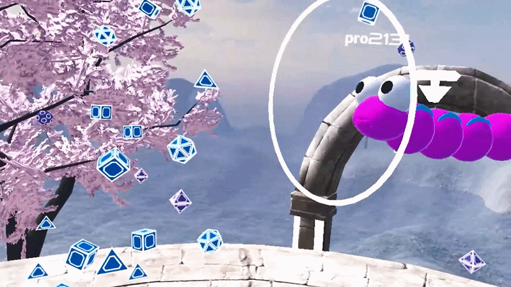 在VR的大空間內(nèi),貪吃蛇體驗(yàn)發(fā)揮出更大的自由度,讓玩家能夠在這樣的虛擬空間內(nèi)盡情發(fā)揮自己高超的“游走”技巧,實(shí)現(xiàn)對(duì)其他聯(lián)機(jī)玩家的“圍殺”。并隨著蛇的成長(zhǎng),它也會(huì)實(shí)現(xiàn)進(jìn)化出盔甲,不過(guò)在玩的過(guò)程中我們需要注意,不要撞到自己和小行星障礙物哦~