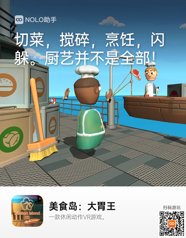 歡迎大家來到《美食島:大胃王(Kitchen Island VR)》的世界!VR頭顯盛行?傳統(tǒng)的烹飪休閑游戲還能滿足你么?今天就帶你來了解一下VR版本的《胡鬧廚房》有多強(qiáng)!目前該游戲已經(jīng)上架NOLO Sonic 應(yīng)用商店,steam售價(jià)28元,NOLO用戶首周(9月27日—10月4日)享受7折驚喜價(jià)14元,10月4號以后開始恢復(fù)為19.9元。